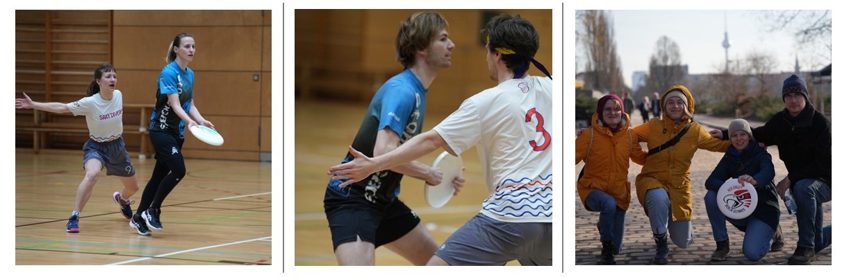 Der Sonntag begann mit einem zeitigen Spiel gegen die Saxy Divers. Dieses Mal gab es einige lange Punkte. Teils lag es an mehrfachen Turns, aber auch an der starken Wall der Leipziger*innen, womit wir viel über unseren Aufbau arbeiten mussten. Wir ließen uns aber nicht aus der Ruhe bringen und konnten einen knappen 9 zu 7 Sieg feiern.